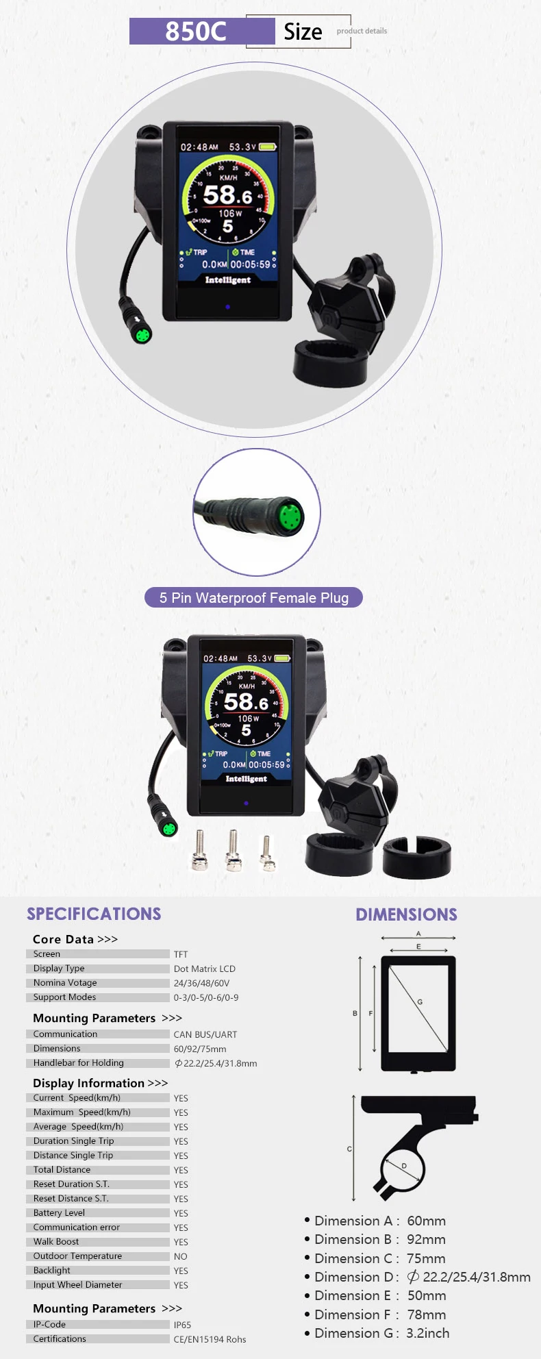 ●●●All displays in this product link only fit for the Bafang motor with UART protocol.