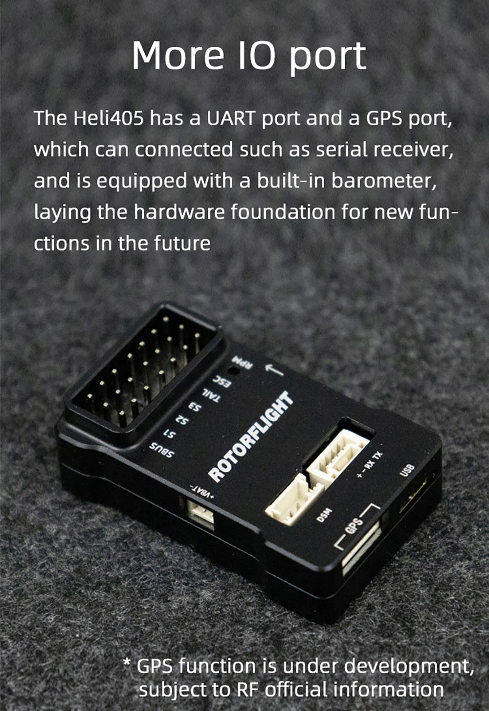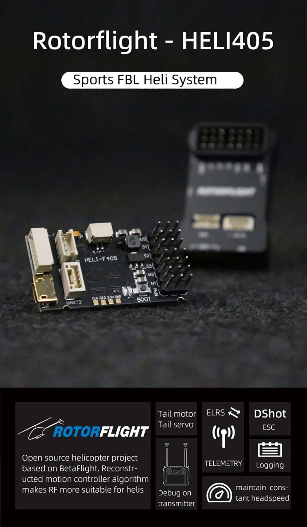 1.Flight Controller: Rotorflight ist eine Flugsteuerungs-/FBL-Software-Suite für traditionelle Einrotor-RC-Helikopter.Es basiert auf Betaflight , genießen Sie alle großartigen Funktionen der Betaflight - Plattform , plus viele neue Funktionen , die für Helis hinzugefügt wurden . Rotorflight leiht sich Ideen und Code auch von Heliflight 3D, einer früheren Abspaltung von Betaflight für Helikopter
