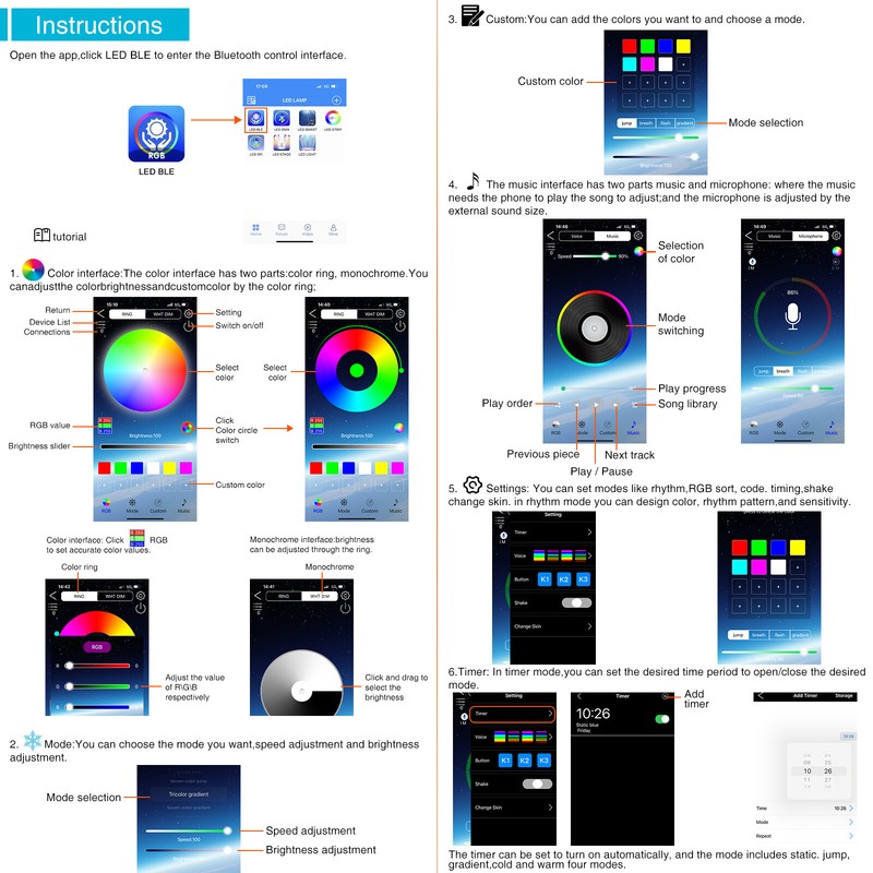 Three control methods: Bluetooth App+RF (4-key/24-key) dual remote control