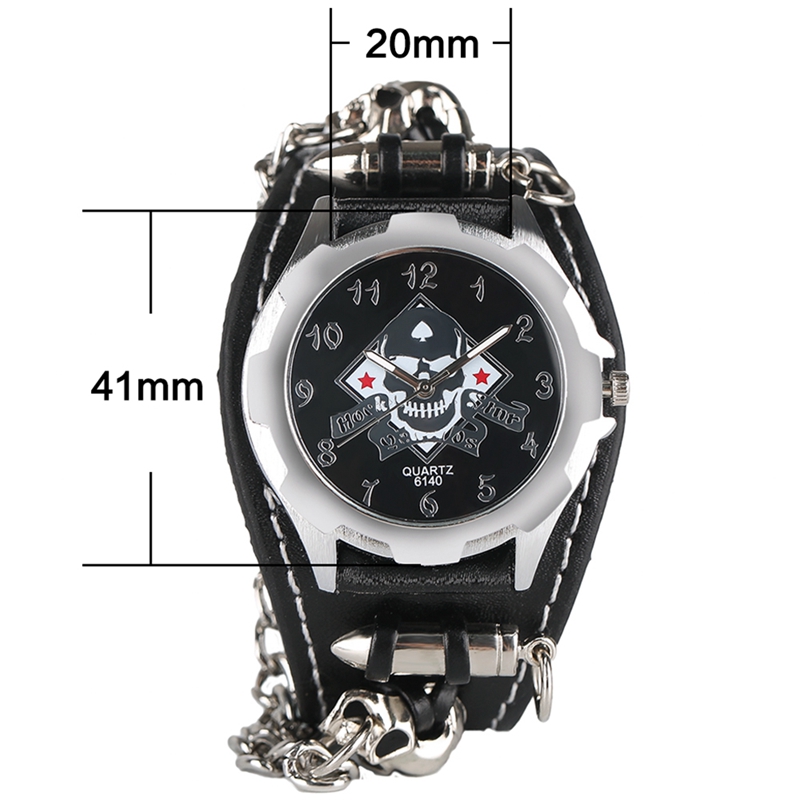 Gothic Bullet Design Men's Skull Quartz Watch Steampunk Leather Strap Watches