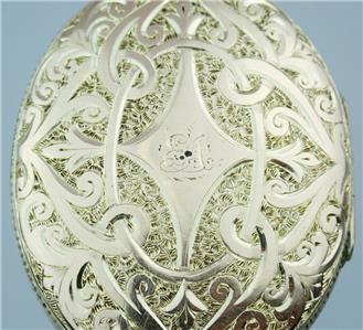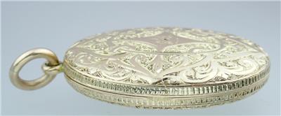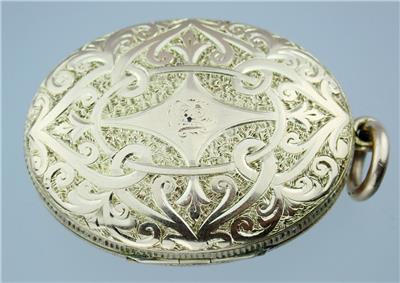 The locket is in excellent condition with no damage and light wear. The hinge works well and the locket closes with a tight snap.