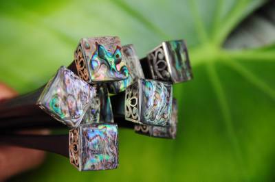 Made from : Sono wood, Paua shell, stainless steel, handmade