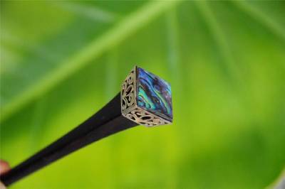 Beautifully made, this decorative hairpin looks so stunning on! The natural wood is variegated in colour and the top end is decorated with a gorgeous slice of Paua shell beautifully set at the top in a stainless steel setting. Each stick is quite unique! They give an elegant touch to your long hair when it is pinned up, and also make a wonderful gift for others.