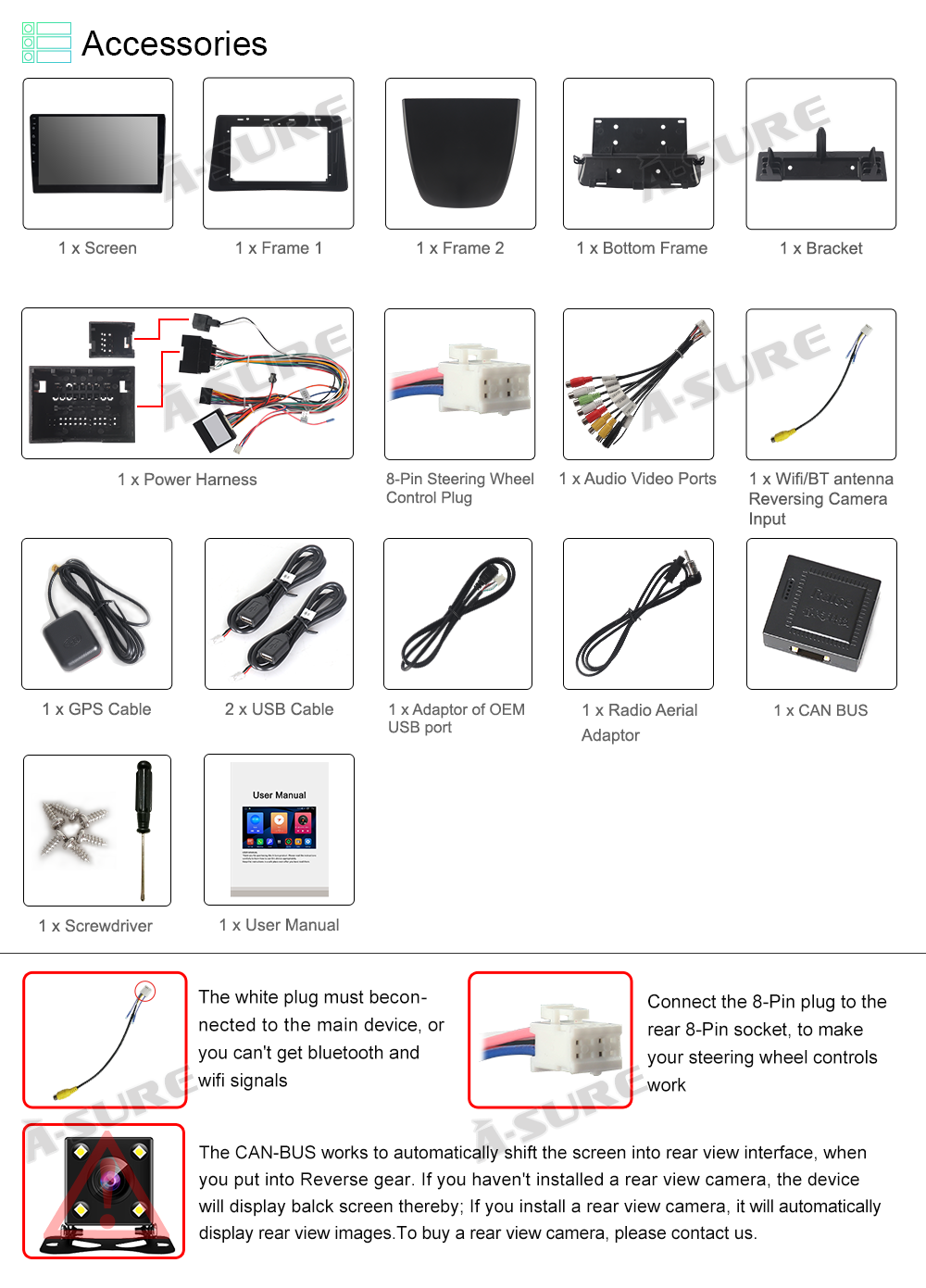 - 【Steering Wheel Control & Aftermarket Rear Camera View】 Steering wheel controls allow the driver to easily operate the vehicle's multimedia system, telephone, navigation, and other functions via buttons on the steering wheel or the touch screen while driving without having to distract their attention from touching other locations. The rear view feature enables real-time monitoring by providing a wider and clearer field of view, reducing blind spots, and lowering wind resistance.