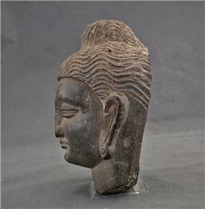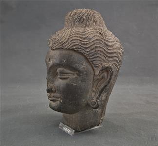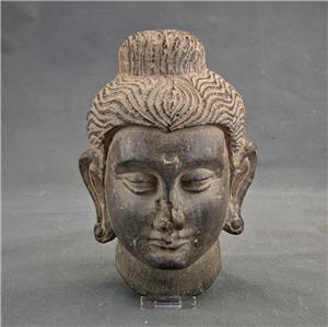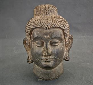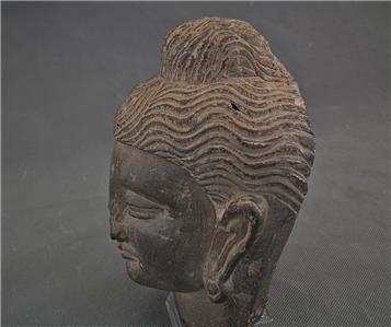 Ancient, circa 3rd century A.D. Gray schist stone head of Buddha, Ancient region of Gandhara,. Kushan Empire period.