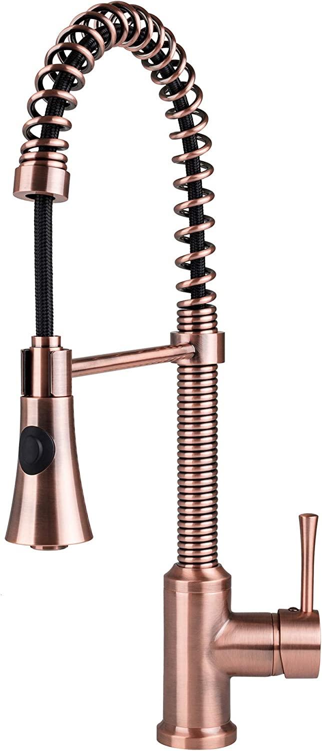 Bring industrial strength to your kitchen space with this solid spring coil pull-out kitchen faucet by Fontaine by Italia. This 1 hole, or 3 hole (by using the optional deck plate provided), faucet features a lever handle and flat shaped 2-function spray head and a cone shaped 2-function spray head to combat difficult stains and hard-to-reach corners. That's right, you get 2 spray heads allowing you to quickly change the look of your faucet. The flexible swivel neck features braided nylon wrapping and a coil support for safety and long-lasting use. A deck plate in matching finish is included to cover 3 holes which have an 8 inch spread or simply discard the deck plate for 1 hole applications. Your new Fontaine by Italia copper spring faucet is sure to be the center piece of your kitchen