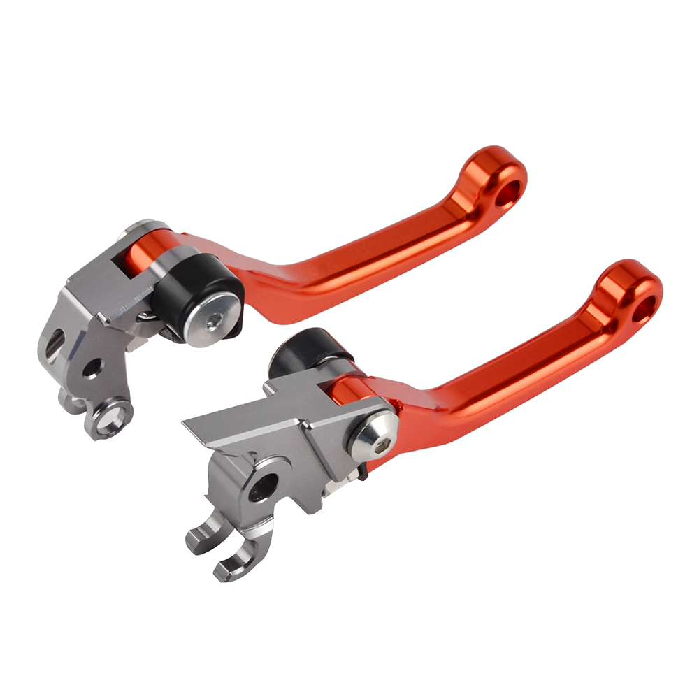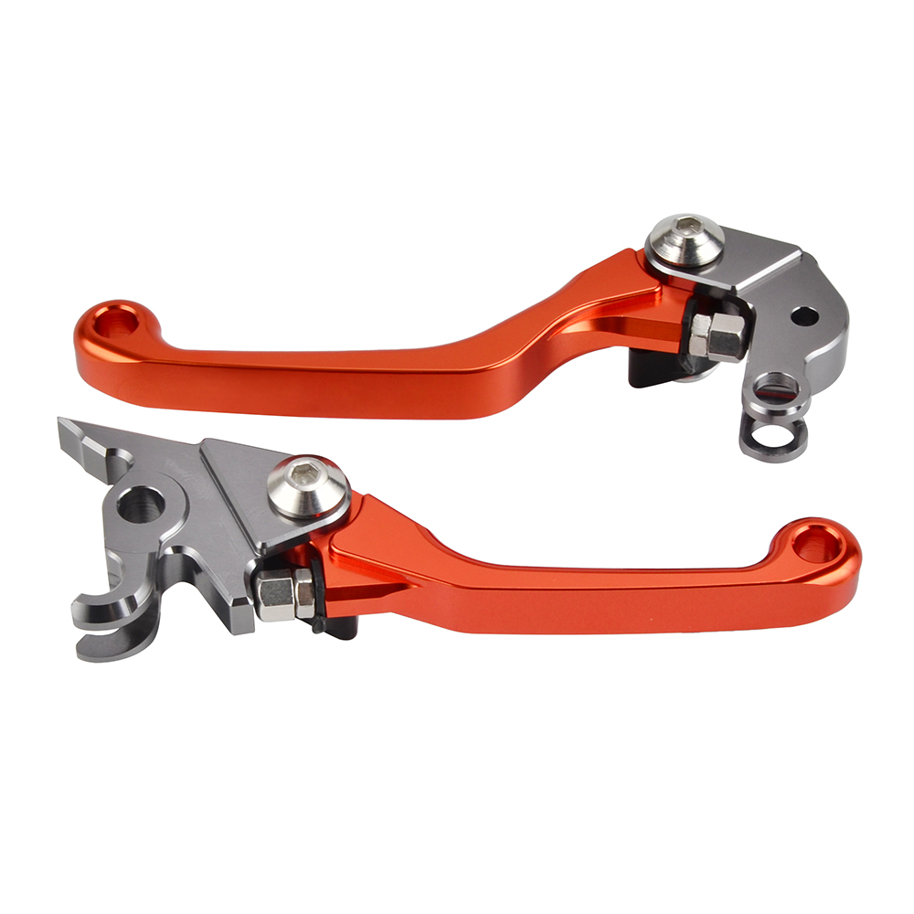 CNC Machined High Quality Aluminum Pivoting Levers For DirtBikes Motocross And Street Bikes. The pivot design allows the lever to fold outward to prevent bending or breaking in the event of a crash. Automatic lever position restoration provides quick recovery from the crash. Ultra precision machine cut for super light weight construction, high precision and quality.