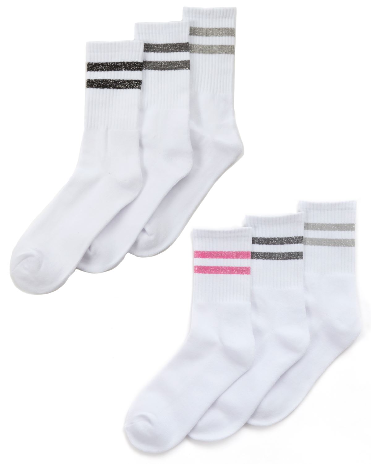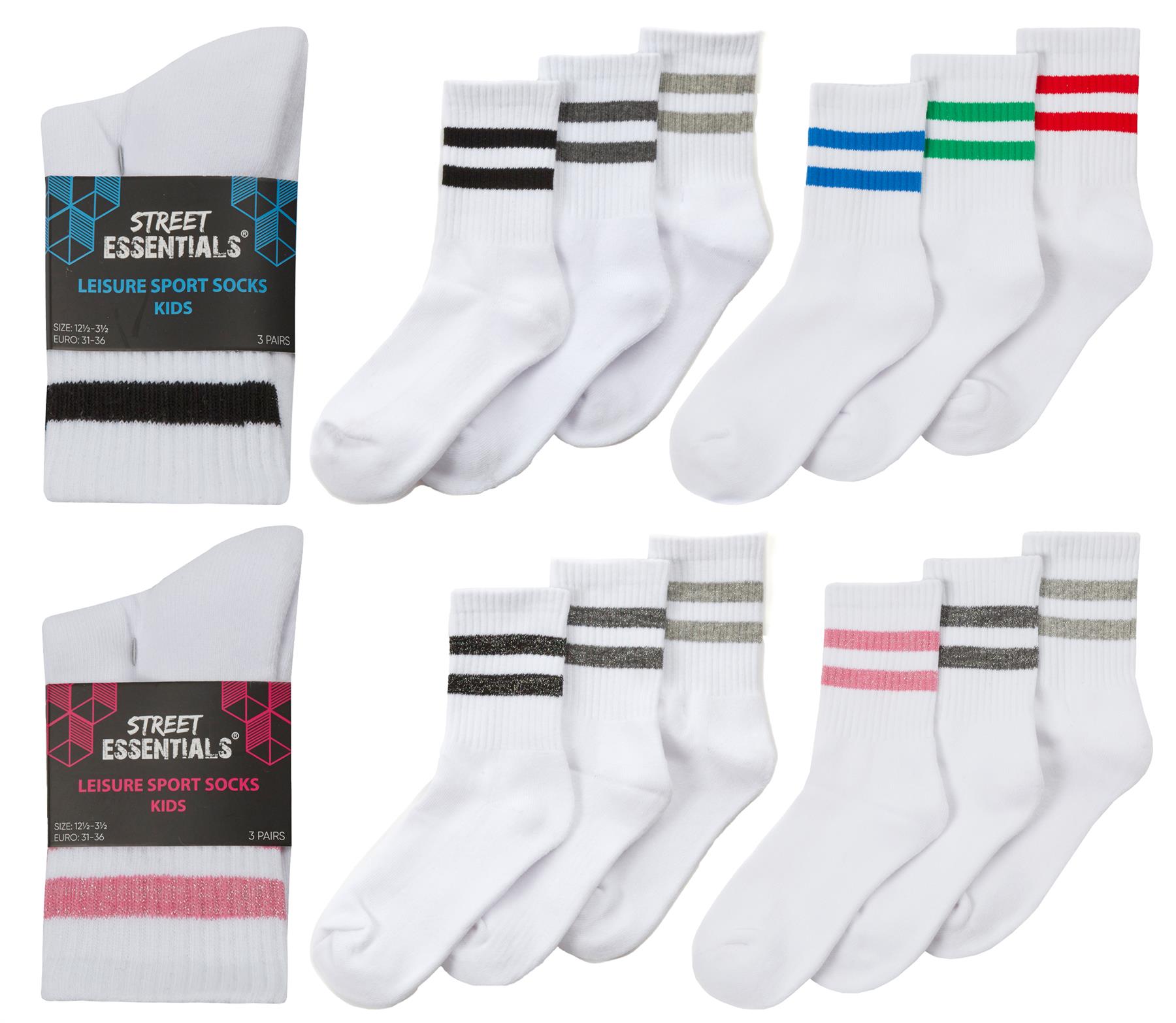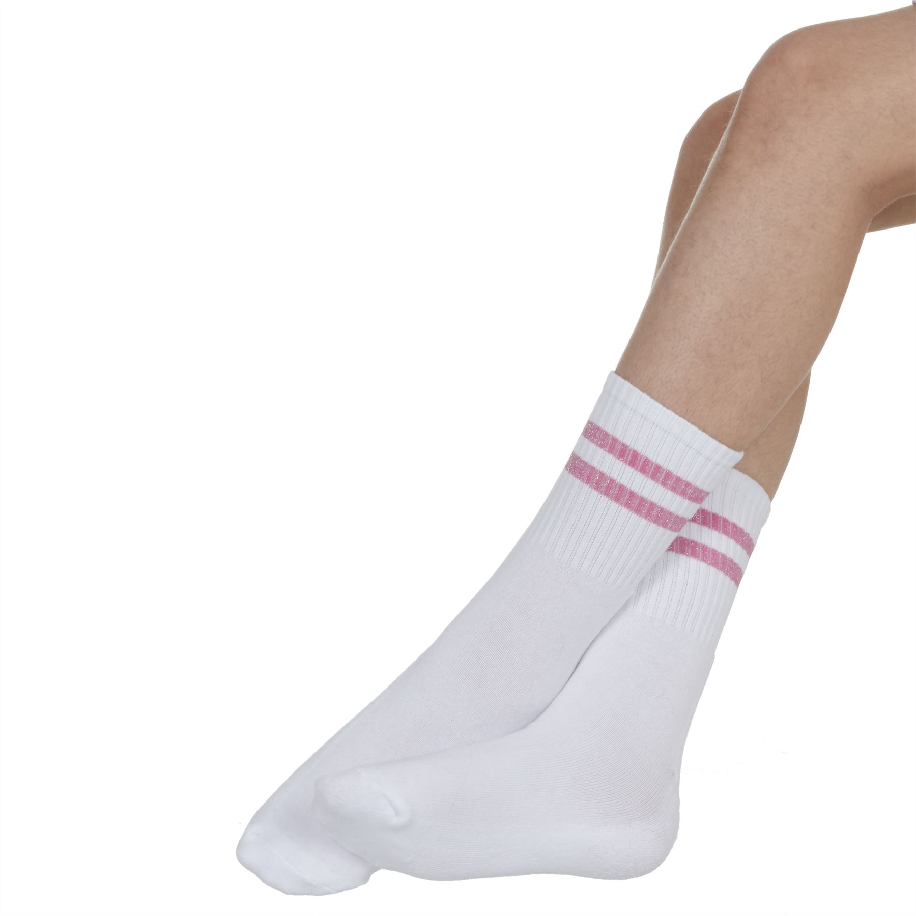 ⭐ Sports Socks - The perfect everyday sports socks for all day comfortable wear, whether exercising, playing out or lounging at home. Featuring coloured stripes around the top (the pink colour has glitter stripes).