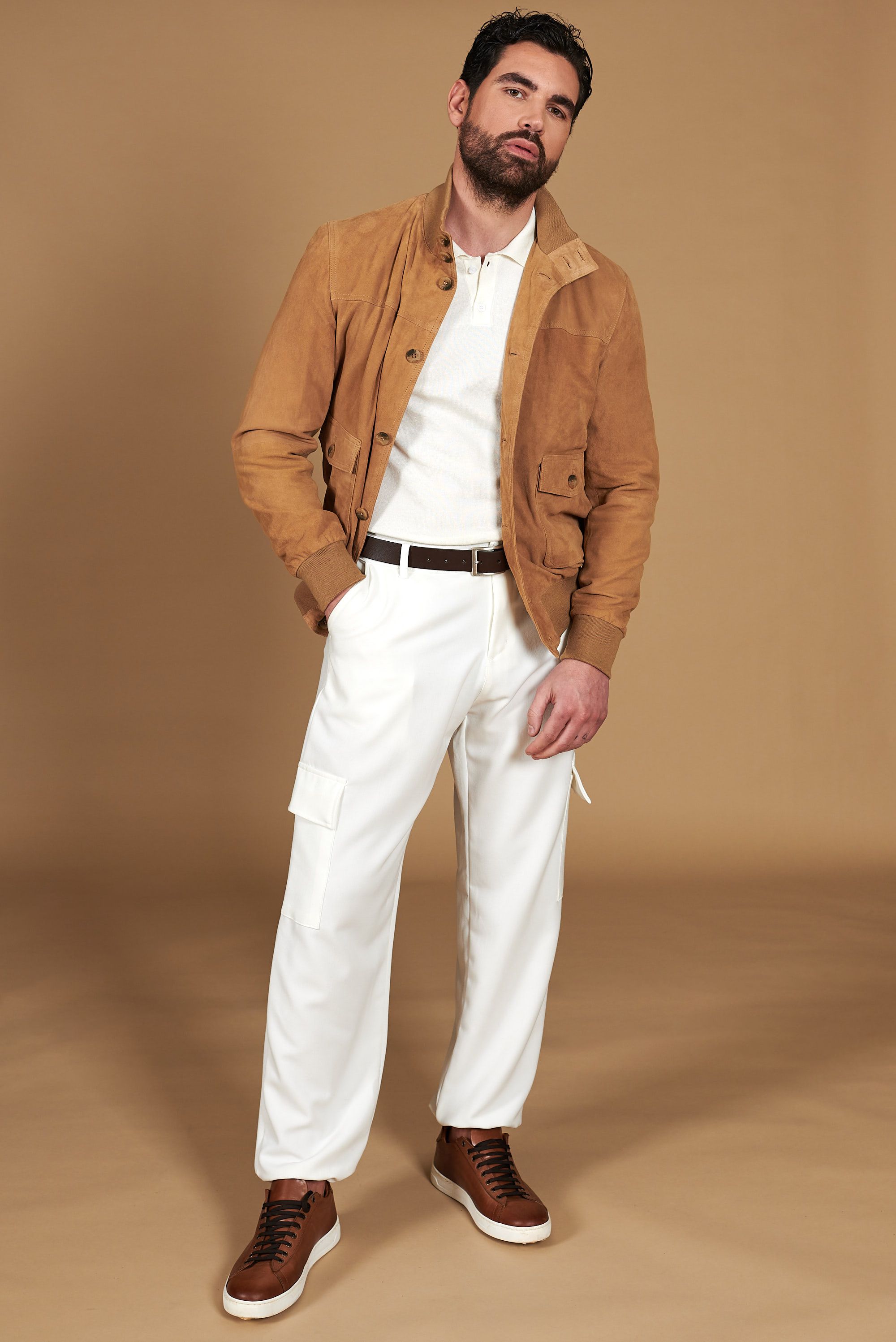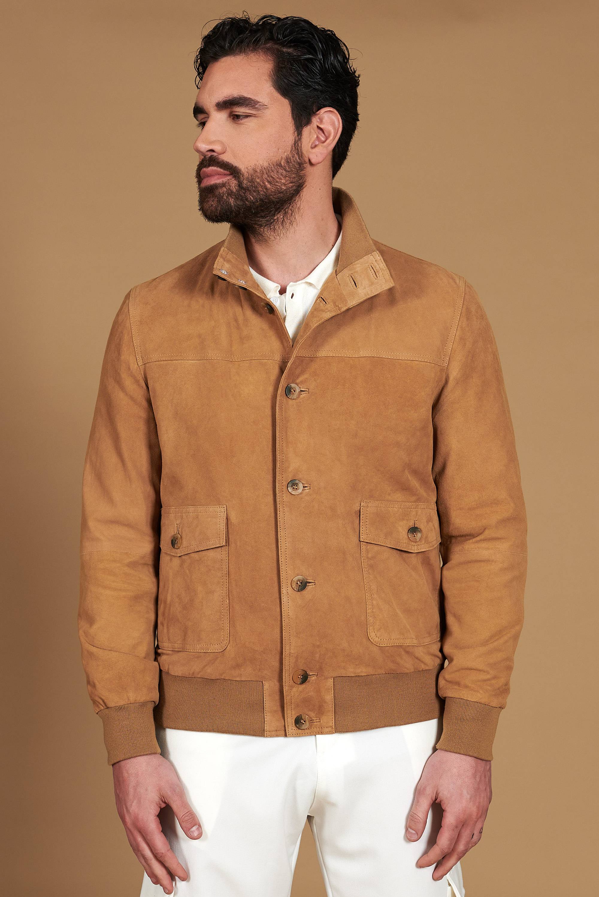 Il bomber in camoscio Alex è un pezzo di storia, reinterpretato per l’uomo contemporaneo.