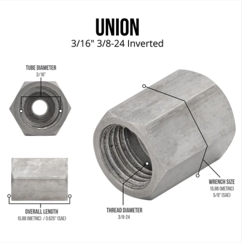 Crafted from 300 series stainless steel, these brake line unions are unmatched in their corrosion resistance. Meaning you will never have to replace a single union due to a short life span. The stainless steel material also makes these unions extremely strong. This added strength gives the unions a high level of durability that is not found in other unions and makes for a more secure connection between brake lines.