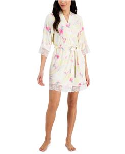 INC Women's Mixed Tie-Dye Lace Trim Short Wrap 1/2 Sleeve Robe Size XS