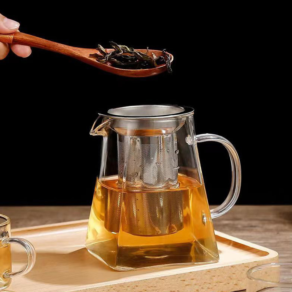 Heat Resistant Clear Glass Teapot Jug With Infuser Coffee Tea Leaf Herbal Pot