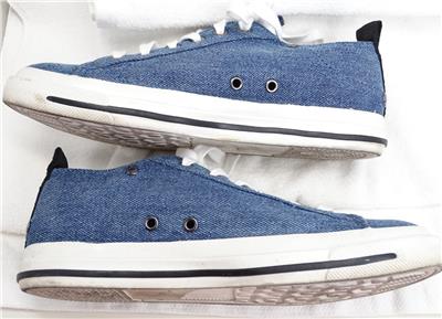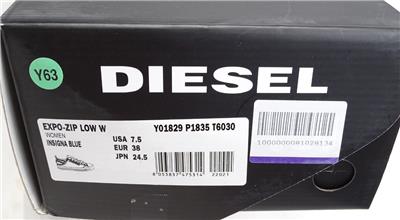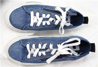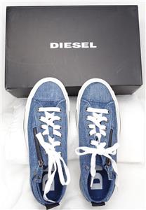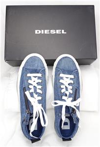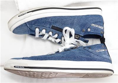 Pre-owned Diesel side zip Insignia Blue denim sneakers with box, size 7.5.