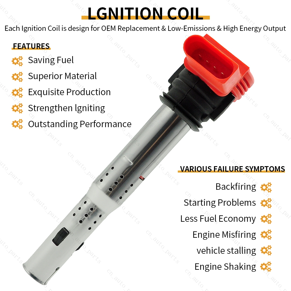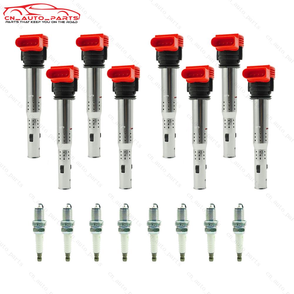8PCS Ignition Coil + 8PCS Spark Plug Set for Audi R8 Q7 A6 A8 Quattro V8 UF529