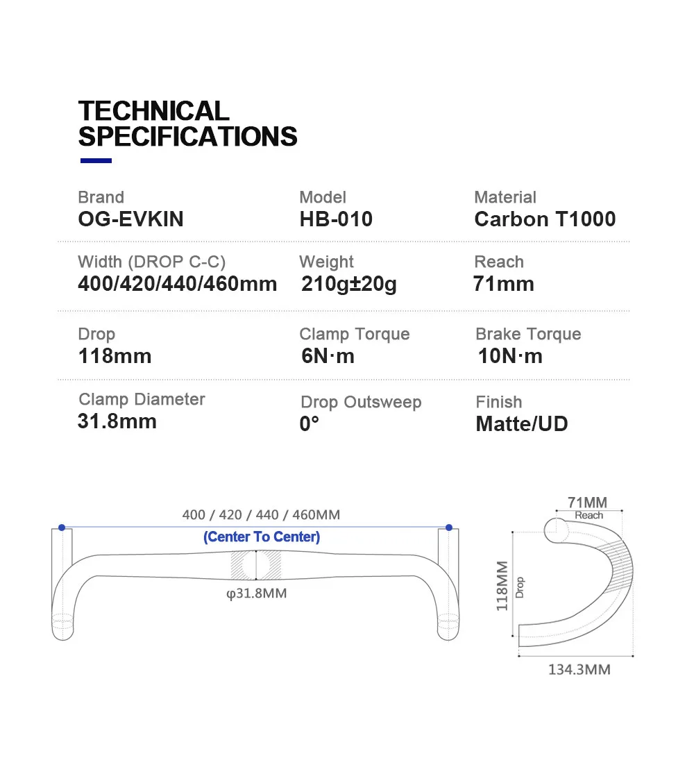 OG-EVKIN HB-010 Carbon Handlebar Road Bike Drop Bar Bicycle Handlebar Road Bike Handlebar 31.8MM 400/420/440/460MM Bicycle Part