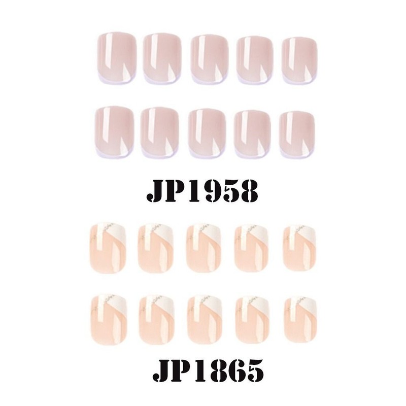 24pcs Nail Tips Glitter Press on Nails Full Cover Square French Fake Nails Short