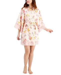 A fresh floral print combines with pretty lace trim on INC International Concepts®' wrap robe.