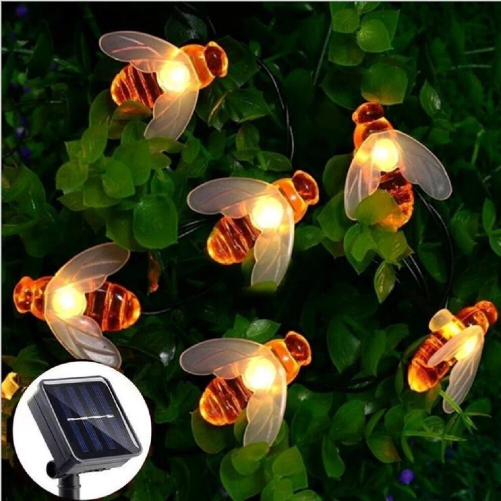 Solar Bee String Lights Outdoor Waterproof Fairy Lights Patio Garden Party Decor