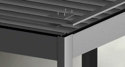 Die Pergola Selt SB 400 PRO besitzt ein Wasserablaufsystem, welches sich im Konstruktionsinneren befindet. Die Regenrinnen und Wasserabläufe sind von Außen unsichtbar, wodurch es möglich ist eine elegante und klare Pergolaform beizubehalten.