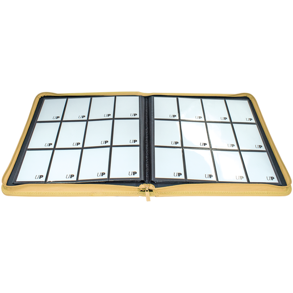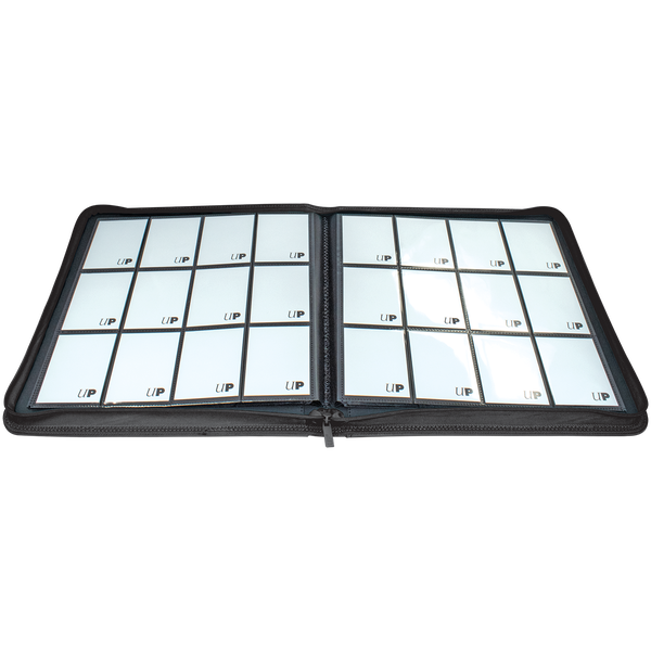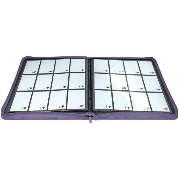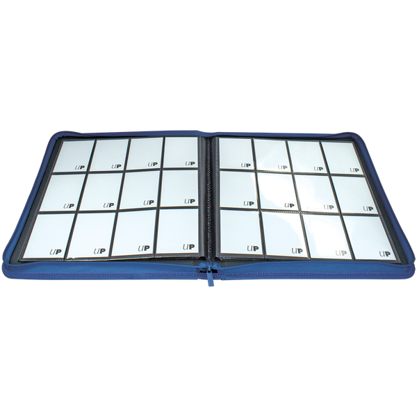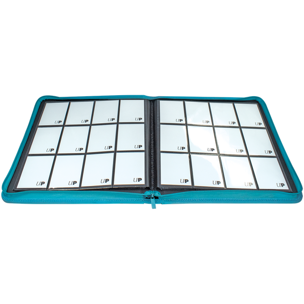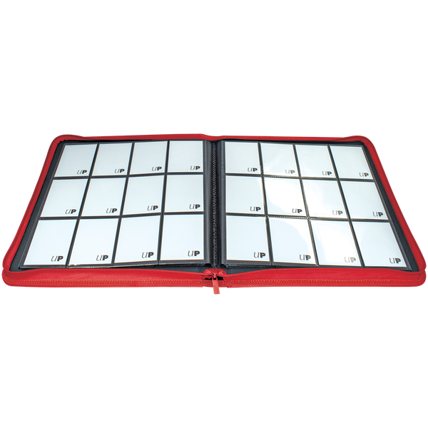 The Vivid 12-Pocket Zippered PRO-Binders are designed for collecting and organizing playsets of your favorite trading cards. Each binder features a padded leatherette cover with a matching zipper closure and pull tab. After unzipping the binder, you'll find twenty 12-pocket pages sized for standard trading cards in side-loading pockets, allowing you to store up to 480 cards in Deck Protector sleeves. Pages feature a low-friction black backing, creating a separation between the front and back pockets as well as providing cards a classic framed look. Every PRO-Binder is made with acid-free, non-PVC materials to ensure your cards are protected and preserved. The 12-Pocket Playset Premium PRO-Binders are available in 8 colors: Blue, Green, Purple, Red, Light Blue, Yellow, Teal, and Black.