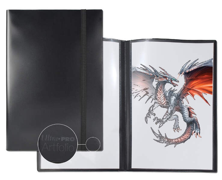 High-quality storage and display portfolio for artists and photographers, the Artfolio by Ultra PRO offers ideal storage for artwork, photographs, lithographs, documents, and more. This Artfolio holds sheets up to 11" x 17" in a vertical format. With 10 double-sided pages, each Artfolio can hold up to 20 sheets. Made entirely with non-PVC materials, the Artfolio is archival-safe for the long-term safekeeping of its contents. The elastic band keeps the Artfolio securely shut during transit, and a black background layer with low-friction texture helps frame your artwork and makes loading the Artfolio a breeze. (Artwork not included)
