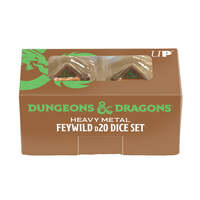 Roll with advantage and ward off enemies on your next adventure with the official Dungeons & Dragons Heavy Metal Feywild Copper and Green D20 Dice Set! Made from a heavy, zinc alloy material, rolling these dice will send a rumble through the realm! The set includes two 20-sided dice featuring the iconic Dungeons & Dragons logo in place of the number 20.