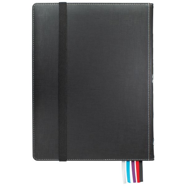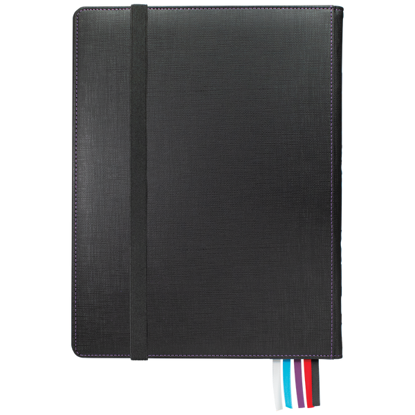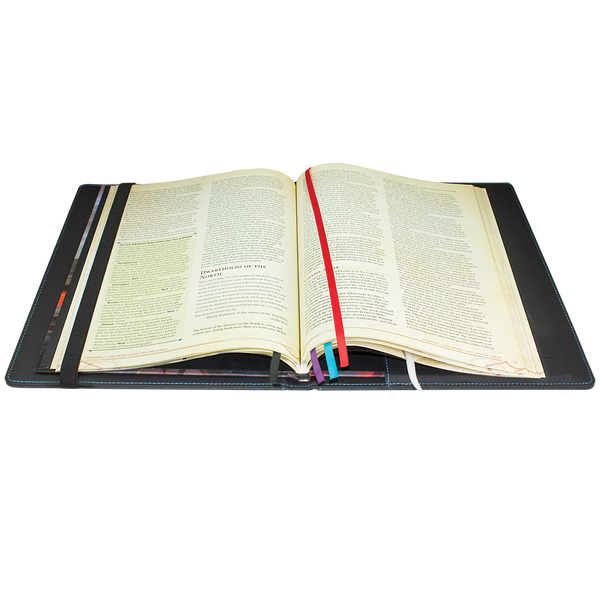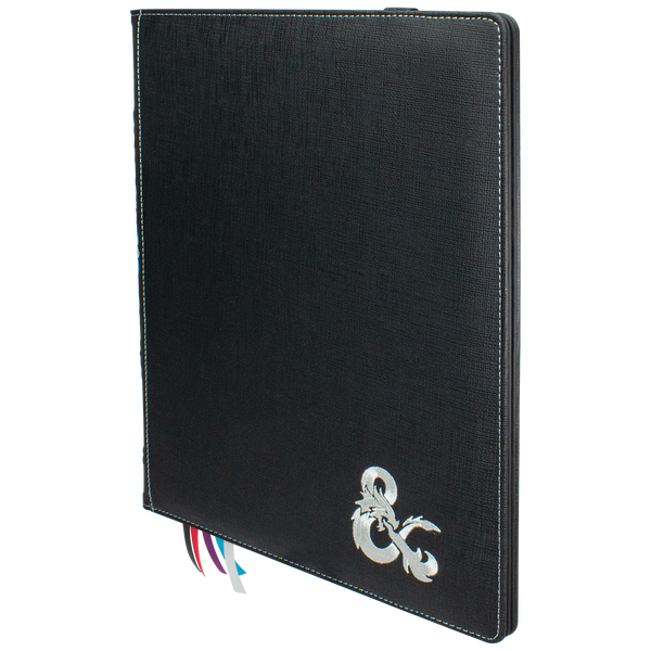 Cast a ward of protection on your treasured D&D sourcebooks with the Premium Book Cover for Dungeons & Dragons. The textured leatherette cover features a rigid layer of protection for both the front and back of the book while remaining flexible at the binding for ease of use. Simply slip the back cover into the back inner pocket and use the front elastic strap to either hold the front cover open or secure the book closed by pulling it over the back cover. Easily reference important pages marked by 5 attached and color-coded ribbons (black, red, blue, purple, & white). Premium Book Covers pair beautifully with other Ultra PRO premium accessories for Dungeons & Dragons. Each book cover features embroidered labeling on the binding as well as the classic D&D ampersand on the front cover, each complimented by color-matched stitching. Sized for both vintage and current size books, this is the ultimate UPgrade for any party member, DM, or D&D enthusiast