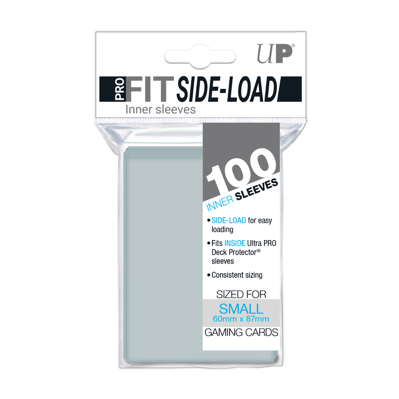 Side-loading PRO-Fit inner sleeves designed for small (Yu-Gi-Oh!) sized gaming cards. These inner sleeves fit tightly around the card to give it an extra layer of protection. PRO-Fit sleeves can also be uséd as a standalone sleeve to showcase the full art of the card. The standard-sized PRO-Fit sleeves can be uséd in conjunction with other rigid holders such as a Toploader, especially recommended if the card is expected to be taken in and out of the holder frequently. Made from ultra-clear, archival-safe, and acid-free material. Do not use with sharp-angled sports cards as the tight fit may damage the corners. 100 sleeves per pack.