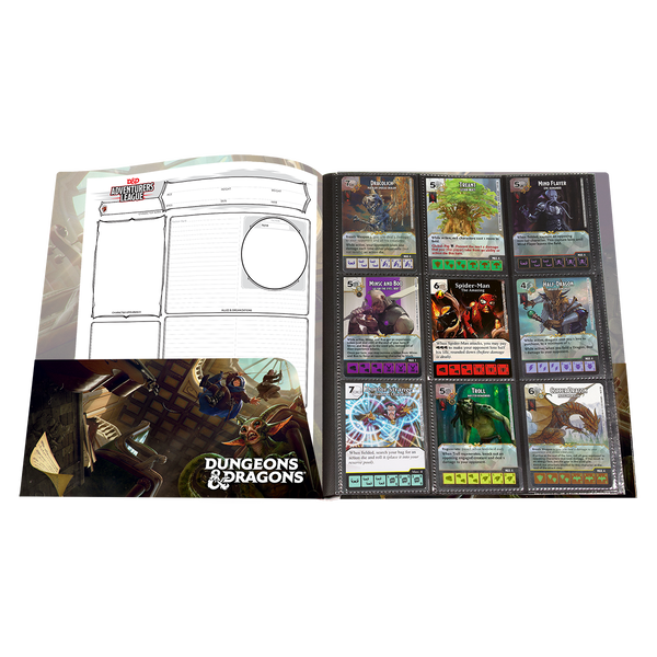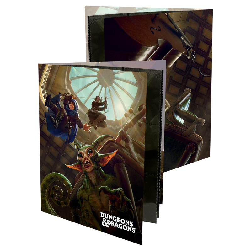 Organize and store your notes, character sheets, and spell cards in a Character Folio for Dungeons & Dragons! Each folio features a vibrant full-art cover and internal pockets, including 10 single-pocket pages for character sheets and notes, and two 9-pocket pages for standard size spell cards. Character Folios now include a sticker sheet to help keep your adventures organized!