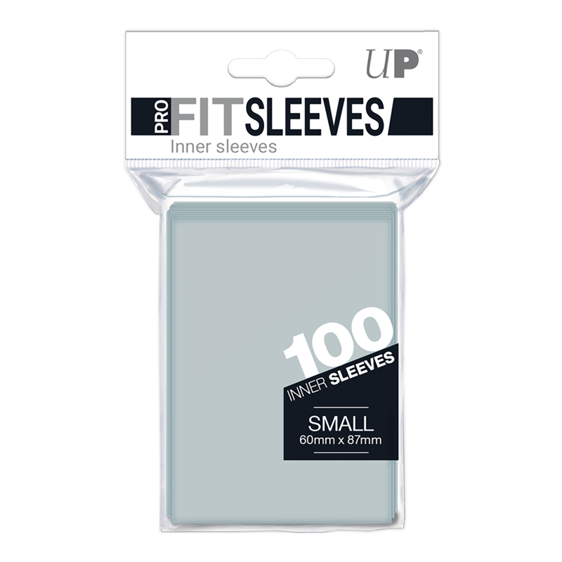 PRO-Fit Small Deck Inner Protector Sleeves are designed for small-sized cards. These inner sleeves fit tightly around the card to give it an extra layer of protection. PRO-Fit can also be uséd as a standalone sleeve if looking to showcase the full art of the card. Made from ultra-clear, archival-safe, and acid-free material. 100 sleeves per pack.