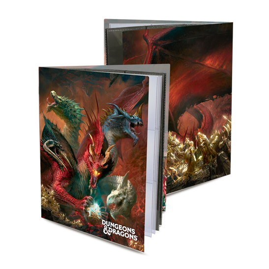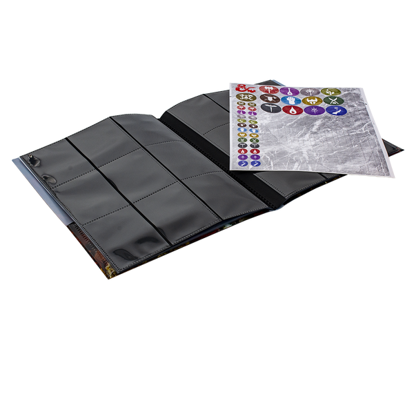 Organize and store your notes, character sheets, and spell cards in a Character Folio for Dungeons & Dragons! Each folio features a vibrant full-art cover and internal pockets, including 10 single-pocket pages for character sheets and notes, and two 9-pocket pages for standard size spell cards. Character Folios now include a sticker sheet to help keep your adventures organized!