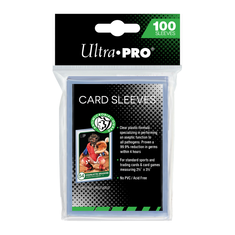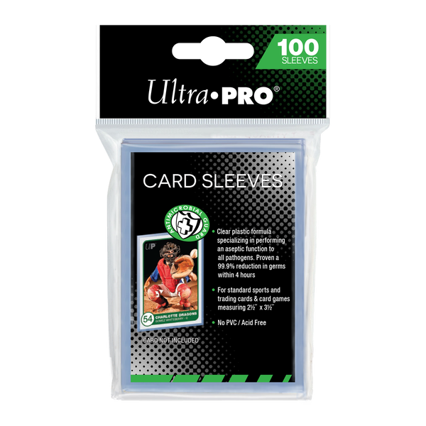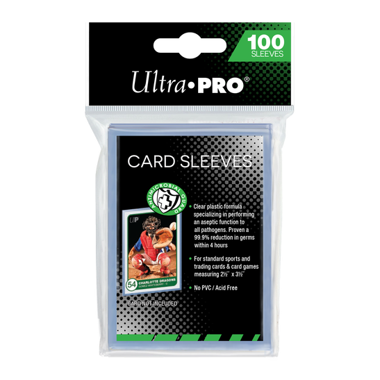 Made with the avid collector in mind, the Anti-Microbial Guard Card Sleeves are made with non-PVC, acid-free, and archival-safe polypropylene film with special anti-microbial additives proven to eliminate 99.9% of germs within 4 hours. These sleeves are designed to fit standard size (2-1/2" X 3-1/2") trading cards and collectible gaming cards. Each pack comes with 100 individual sleeves and is made in California, USA.