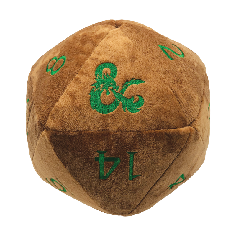 Make your next saving throw safely with the official Dungeons & Dragons Jumbo Plush Dice! Made with an ultra-soft, fuzzy fabric with stitched numbers, this D20 is soft enough to cuddle during a long rest. Measuring approximately 10” in diameter, with reinforced felt backing to help the die retain its shape, this stuffed toy is great for kids and adults alike!