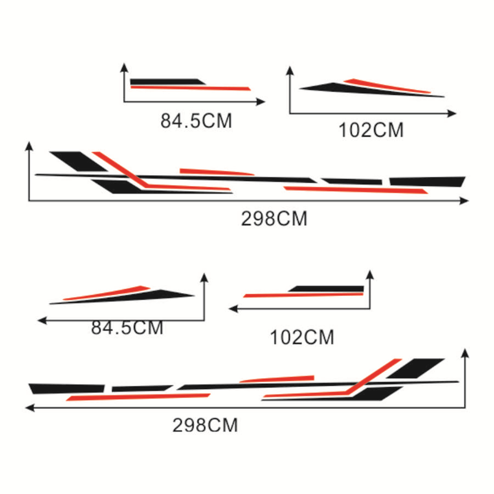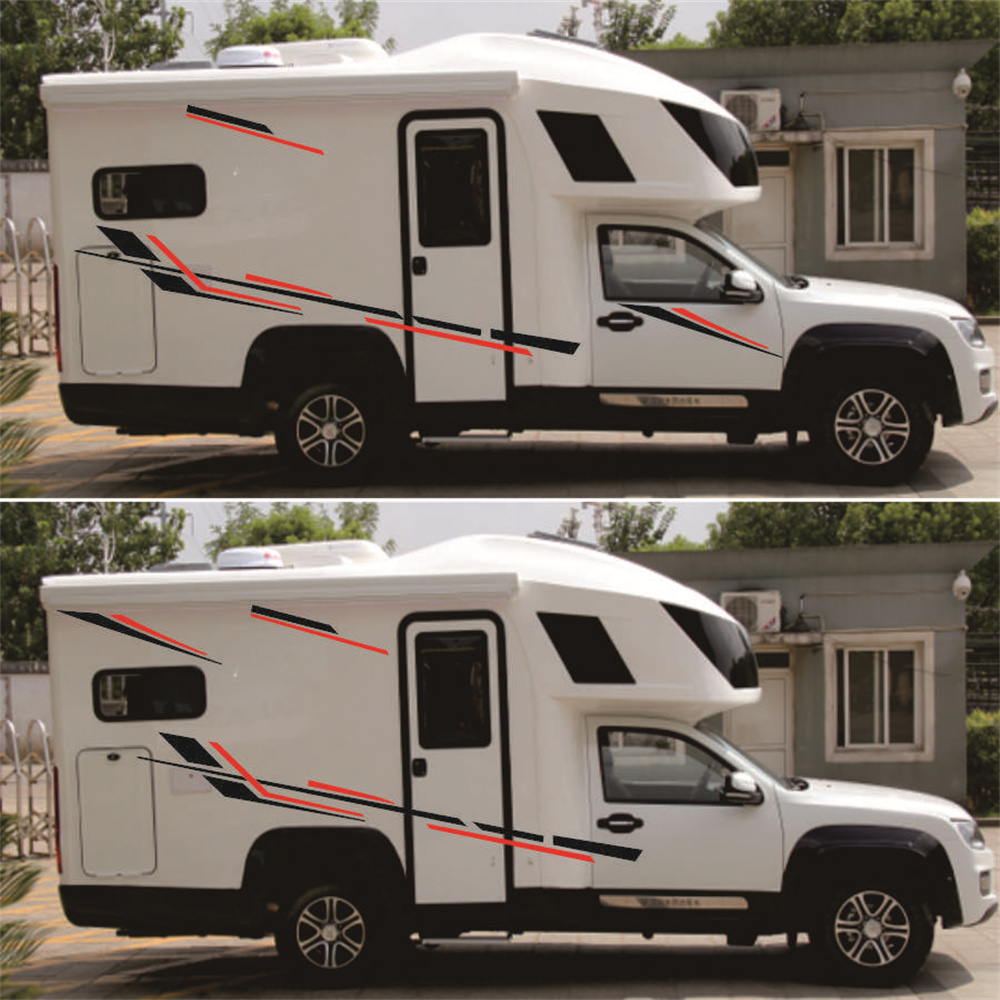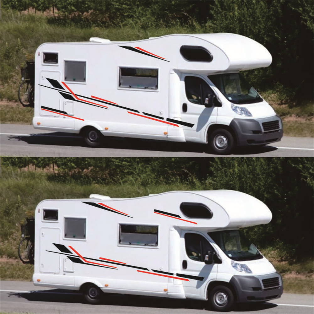 Two Side Stripes Graphics Vinyl Stickers Decals Car Stickers Kit Black/Red For Camper RV Trailer