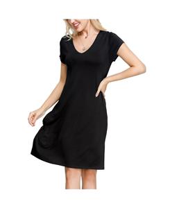Soft jersey vneck swing dress with side seam pockets 36" hps.