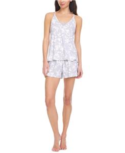 Flora Women's Light Blue Emilie Ribbed Cami & Tap Shorts Pajama Set Size M