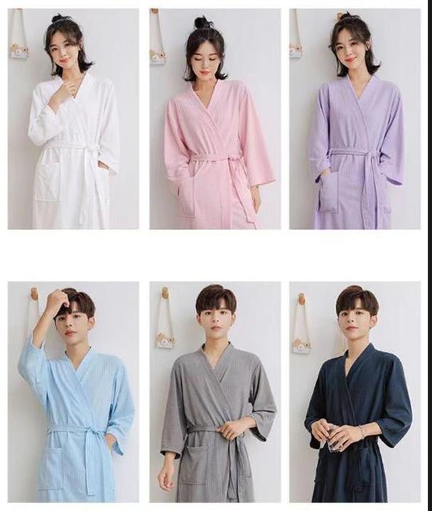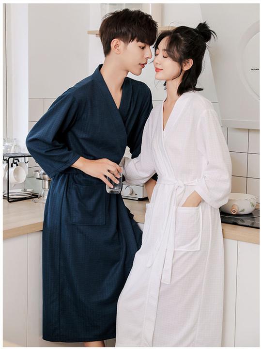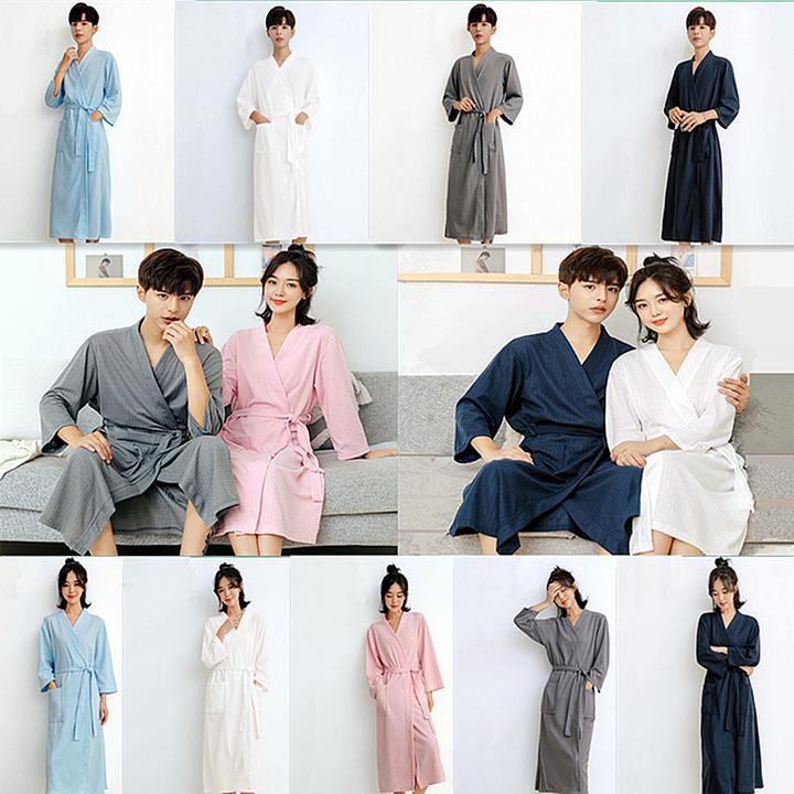 Unisex Cotton Microfiber Waffle Towel Dressing Gown Nightwear Hotel Spa Bathrobe
