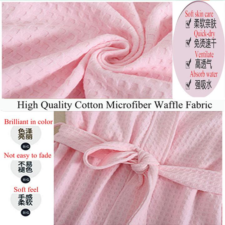 Features: This Waffle robe is made of high-quality cotton microfiber (polyester) fabric. The fabric goes beyond pure cotton and has the advantages of being more gentle, absorbent, quick-drying and machine washable. As a result, the product is the luxury choice for homes, hotels, spas, nursing homes, gyms and golf clubs.