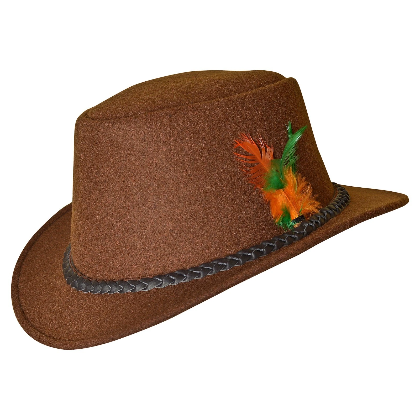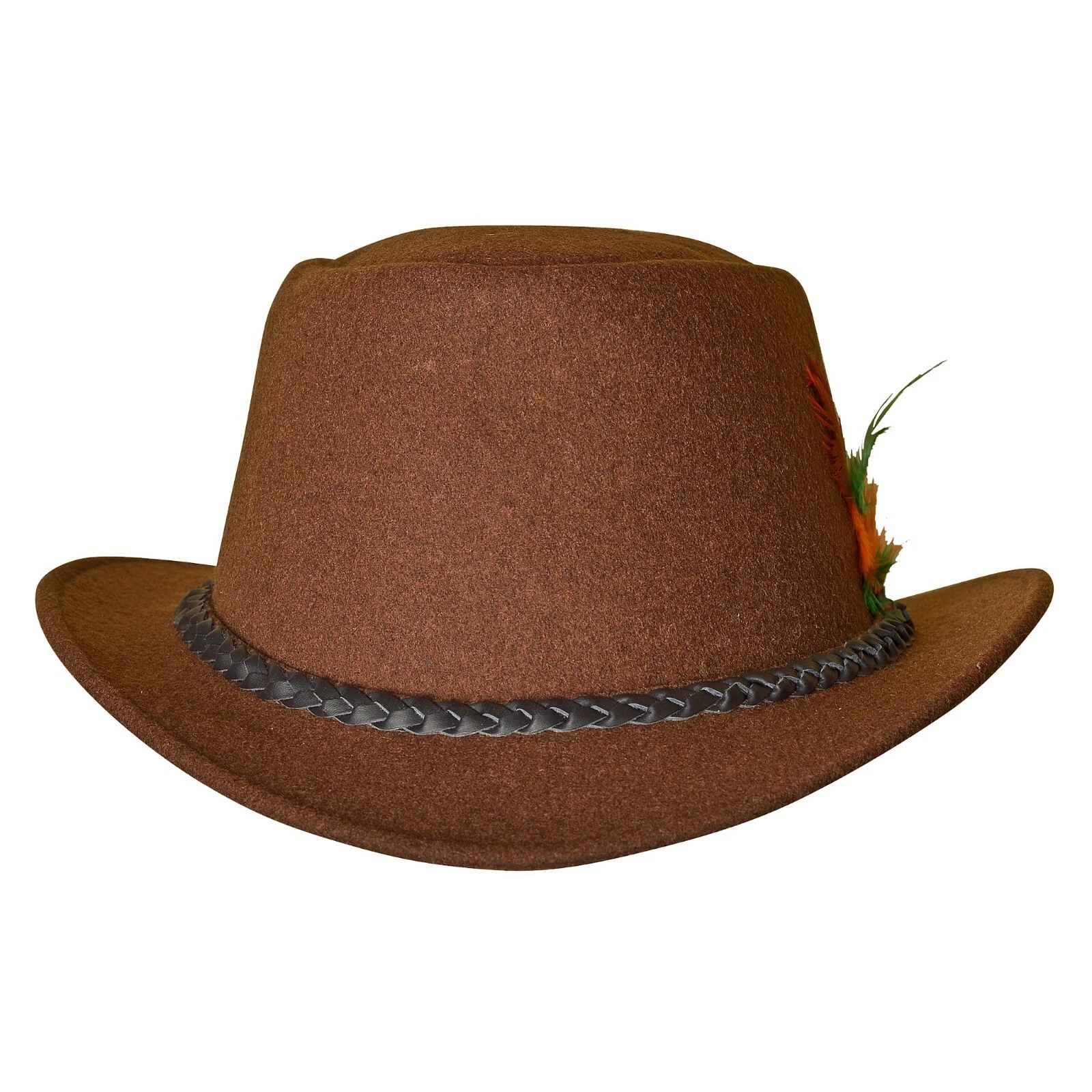 Gentry Choice Bavarian Hat in brown is made from 100% premium wool that feels soft and comfortable for everyday wear. It has a clean fedora shape with a braided rope band and a small feather detail that gives it a traditional Bavarian touch. The wool is light and breathable, and the 58–59 cm size fits most people without any trouble. This Bavarian Country Man Wool Hat goes well with traditional outfits and keeps the look simple and authentic.