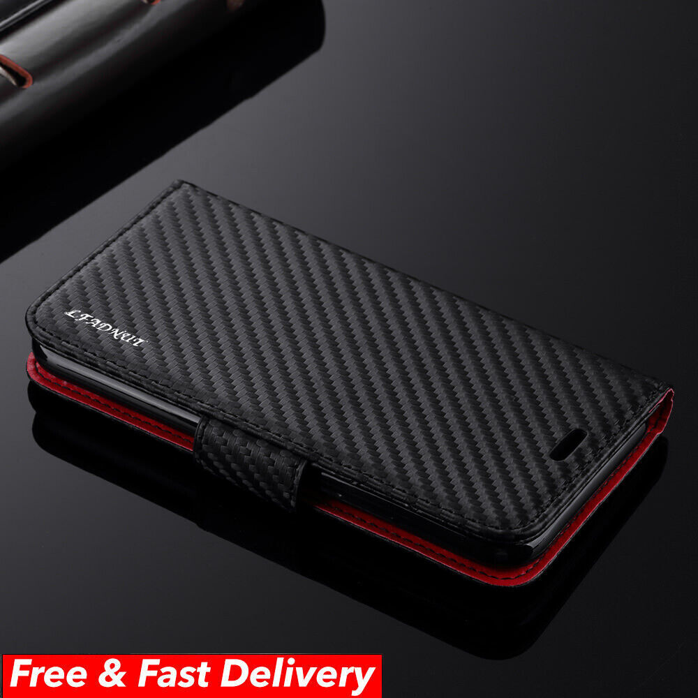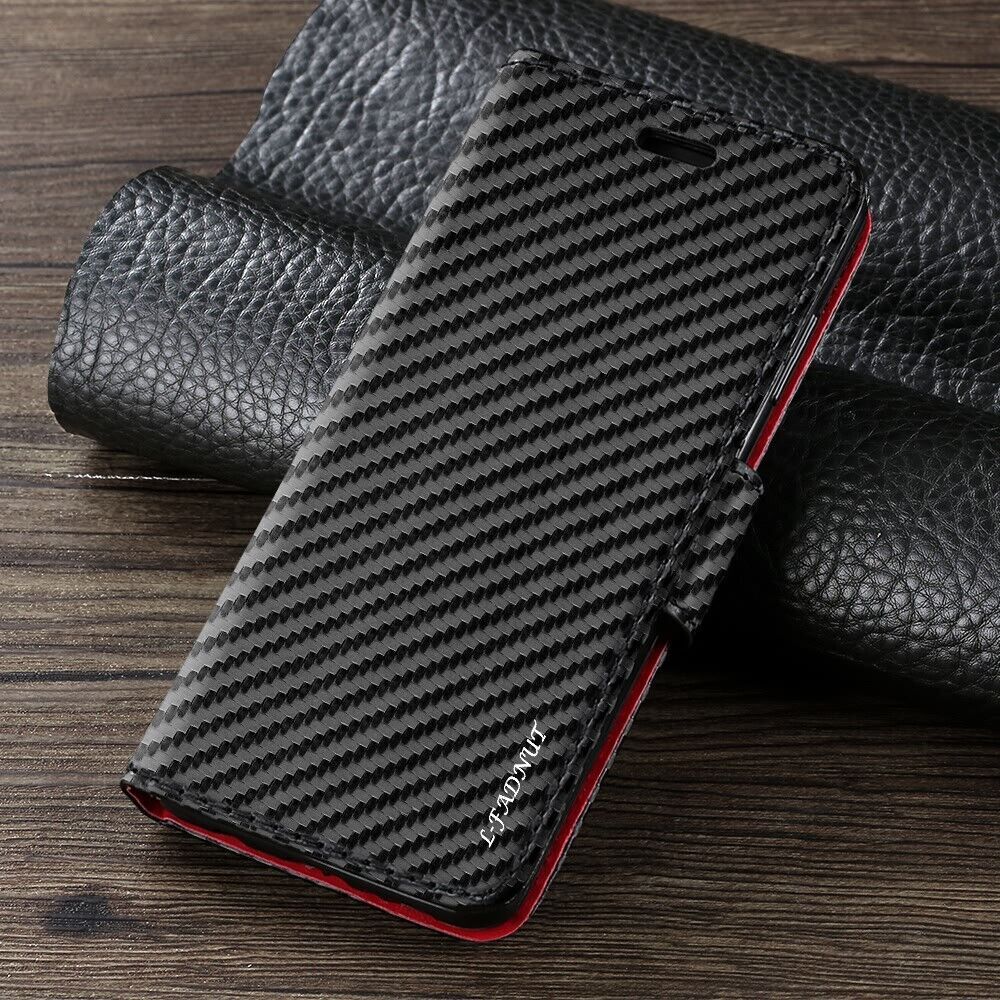 Luxury Leather Wallet Case,Classical Carbon Fiber Protection Case Soft TPU 3 Card Slots Magnetic Bumper Cover with Stand