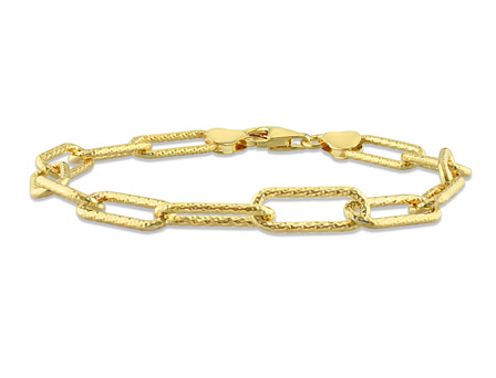 Be the next role model for all the jewelry lovers with this supremely elegant Paperclip Bracelet. In sparkling yellow plated sterling silver, this flawless 7. 5-inch bracelet is comfortably secured with a lobster clasp. Enhanced with a high polished finish, this remarkable bracelet is made in Italy and will be an inspiration for several young designers and open a new avenue in the world of accessories.