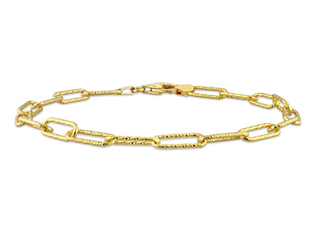 Jazz up your outfit with this classy Paperclip Men's Bracelet. Crafted in shimmering yellow plated sterling silver, this enthralling 9-inch bracelet is comfortably secured with a lobster clasp. Enhanced with a high polished finish, this captivating bracelet is made in Italy and is perfect to leave an everlasting mark wherever you go. Whether you pair this splendid bracelet with a classy ring or decide to go solo, you will look glamorous.