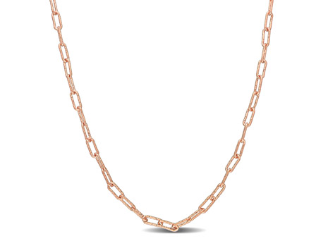 Witness her blush like never before when you slide this charming Paperclip Necklace on her neckline. Crafted in lustrous rose plated sterling silver, this splendid 20-inch necklace is securely and comfortably fastened with a lobster clasp. This appealing necklace is made in Italy and will always remind her of that special moment and of your unconditional love. Polished to a brilliant shine, she will treasure this mesmerizing necklace and wear it for every important occasion.
