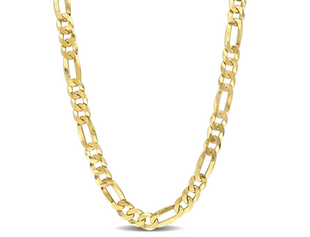This magnificent Figaro Flat Necklace is crafted in glittering yellow plated sterling silver and features a flickering figaro chain. Enhanced with a high polished finish, this amazing chain is secured with a lobster clasp. This necklace measures 22-inch in length. This dazzling and timeless necklace is made in Italy and is an elegant piece of jewelry for any dressy occasion. Perfectly fits for layering for both men and women.