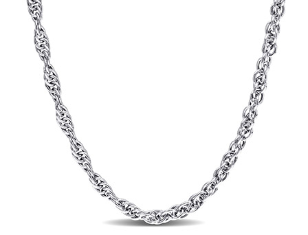 Step out with confidence with this Singapore Chain Necklace. Crafted in lustrous sterling silver, it features a lightweight Singapore Chain. Enhanced with a high polish finish, this Italian necklace measures 24-inches in length and secures with a lobster clasp. Elegant and refined, this necklace will add a touch of dazzling charm to your look. This versatile layering necklace is a perfect addition to your wardrobe.