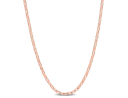 Be prepare to dazzle everyone with this Fancy Rolo Chain Necklace. Crafted in lustrous rose plated sterling silver, it features a sparkling fancy rectangular rolo chain. Polished to a brilliant shine, this link necklace measures 18-inch in length and secures with a lobster clasp. Choose this made in Italy, glamorous necklace to suit with your dress or shirt neckline to look uber chic.