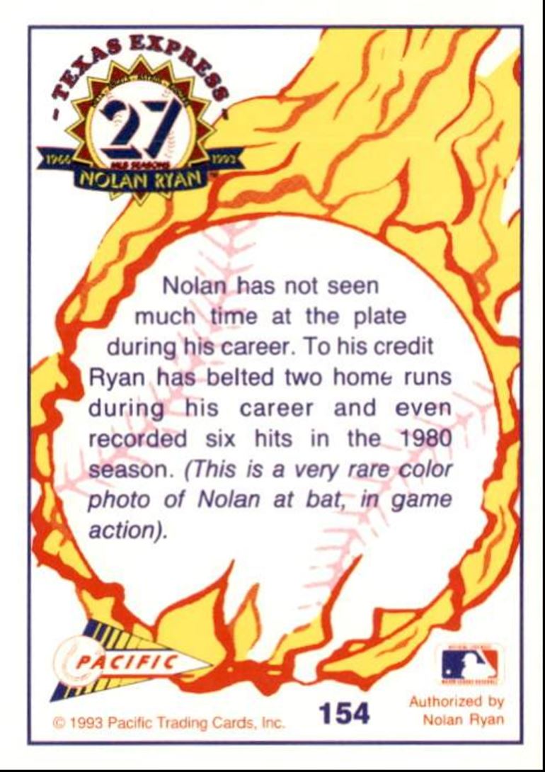 | 1993 Pacific Texas Express Baseball Card Nolan Ryan The Seldom of Swat Houston |