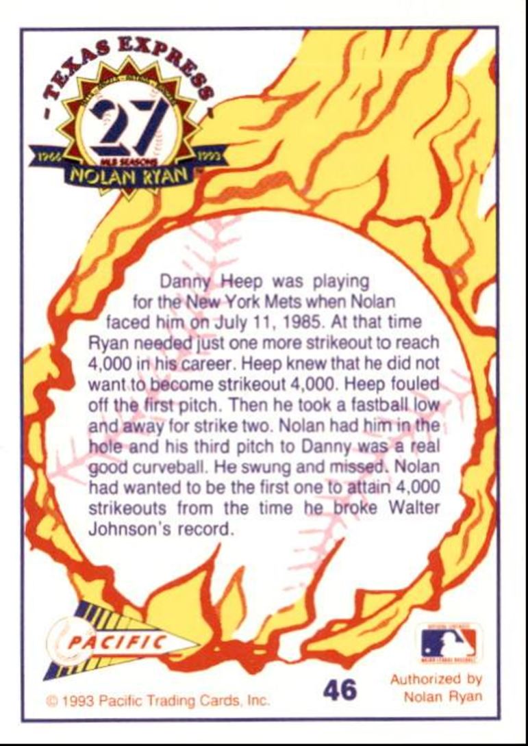 | 1993 Pacific Texas Express Baseball Card Nolan Ryan Strikeout 4,000 Houston |