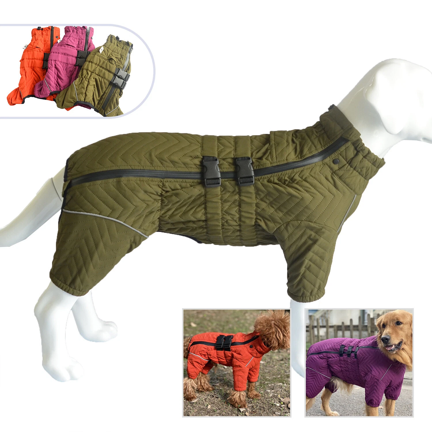 Dog Coat Warm Jacket, 4 Legs Covered Waterproof Windproof Reflective Dog Pajamas