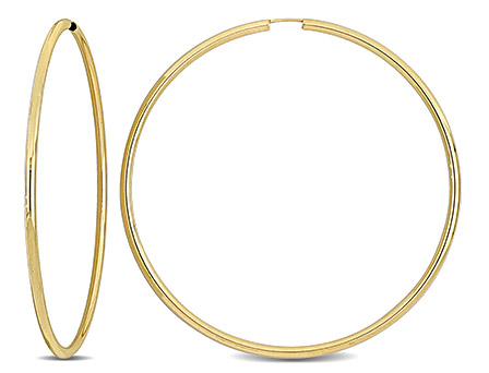 Immerse yourself in the timeless beauty of the 14K Yellow Gold 70mm Hoop Earrings. Exquisitely crafted from the finest 14k yellow gold, these earrings weave together threads of classic sophistication and modern charm. With a striking 70mm diameter, these earrings honor the beloved hoop style. Despite their grand scale, the charming 2mm width ensures they remain delicate and understated. This balance of minimalism and statement style is truly enchanting. Though large in size, these earrings are remarkably lightweight, ensuring that they can be comfortably worn all day long. The polished finish brings out the warm luster of the gold, casting a soft glow that beautifully accentuates your features. Perfect for any occasion, these hoops can be dressed up or down to match any outfit, making them a versatile addition to any jewelry collection. They make a thoughtful gift for a special woman in your life, or a well-deserved indulgence for yourself.
